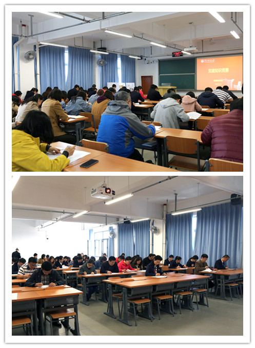 4月3日中午,公司党总支组织的党建知识竞赛在主楼G535教室举行。公司3个教工党支部所有党员、入党积极分子、业务骨干和部分员工参加了竞赛。