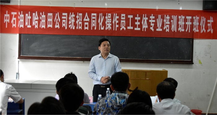 9月17日上午,中石油吐哈油田公司统招合同化操作员工主体专业培训班顺利开班。雷竞技副经理刘锦康、丁锐、贺斌生,吐哈油田公司供水供电处人事科科长周相勇,公司老师、培训班学员共计29人参加了此次开班仪式。