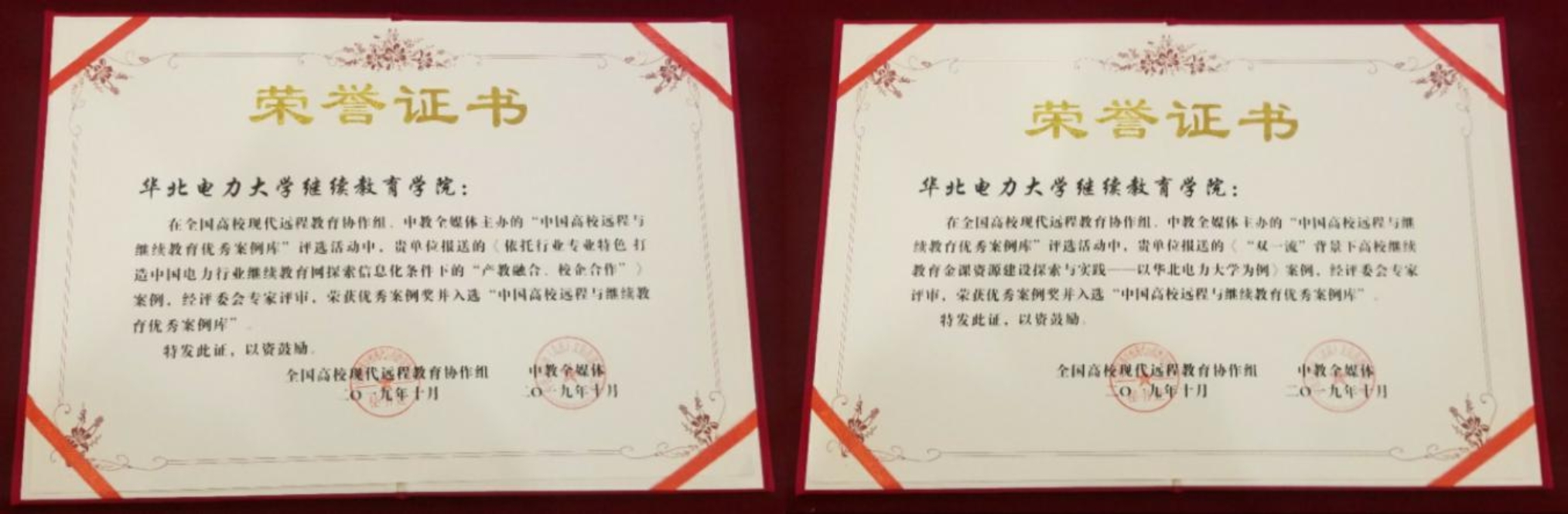 由沈剑飞、贺斌生、单莹等撰写的《依托行业专业特色打造中国电力行业继续教育网探索信息化条件下的“产教融合,校企合作”》案例,以及由贺斌生撰写的《“双一流”背景下高校继续教育金课资源建设探索与实践——以雷竞技raybet为例》案例,获“2019中国高校远程与继续教育优秀案例奖”。