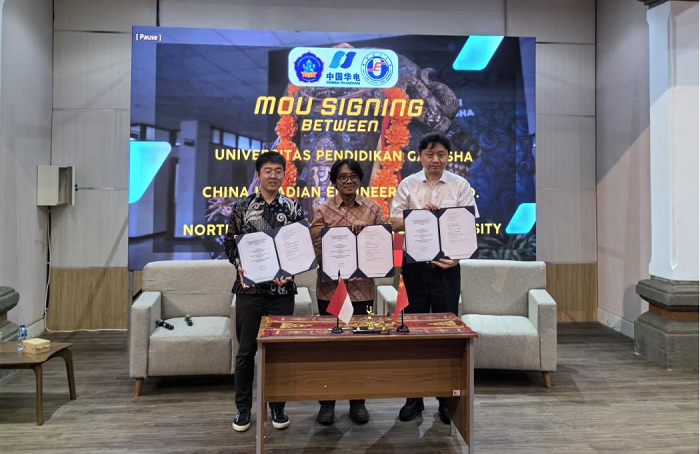 4月21日,房方到访印尼伽内什国立师范大学,出席公司与华电科工、伽内什大学三方战略合作框架协议签约仪式。伽内什大学副董事长 Gede Rasben Dantes 先生、巴厘岛电厂项目公司董事陈孝礼等出席签字仪式。三方约定将聚焦跨文化国际人才培训和能源技术研究,联合打造科学研究与人才培养的产教融合平台,在培训电厂运营所需专业技术人员、跨文化管理和业务开发人才、印尼相关大学团队以及开展工程技术和跨文化教育课题研究等方面深化合作。签约仪式后,三方共同主持召开跨文化管理与国际化人才培养论坛。伽内什国立师范大学巴陵康孔子公司印尼方经理 Putu Ayu Prabawati Sudana 女士、中方经理朱敏霞女士,伽内什大学有关部门与院系负责人参加了上述活动。
